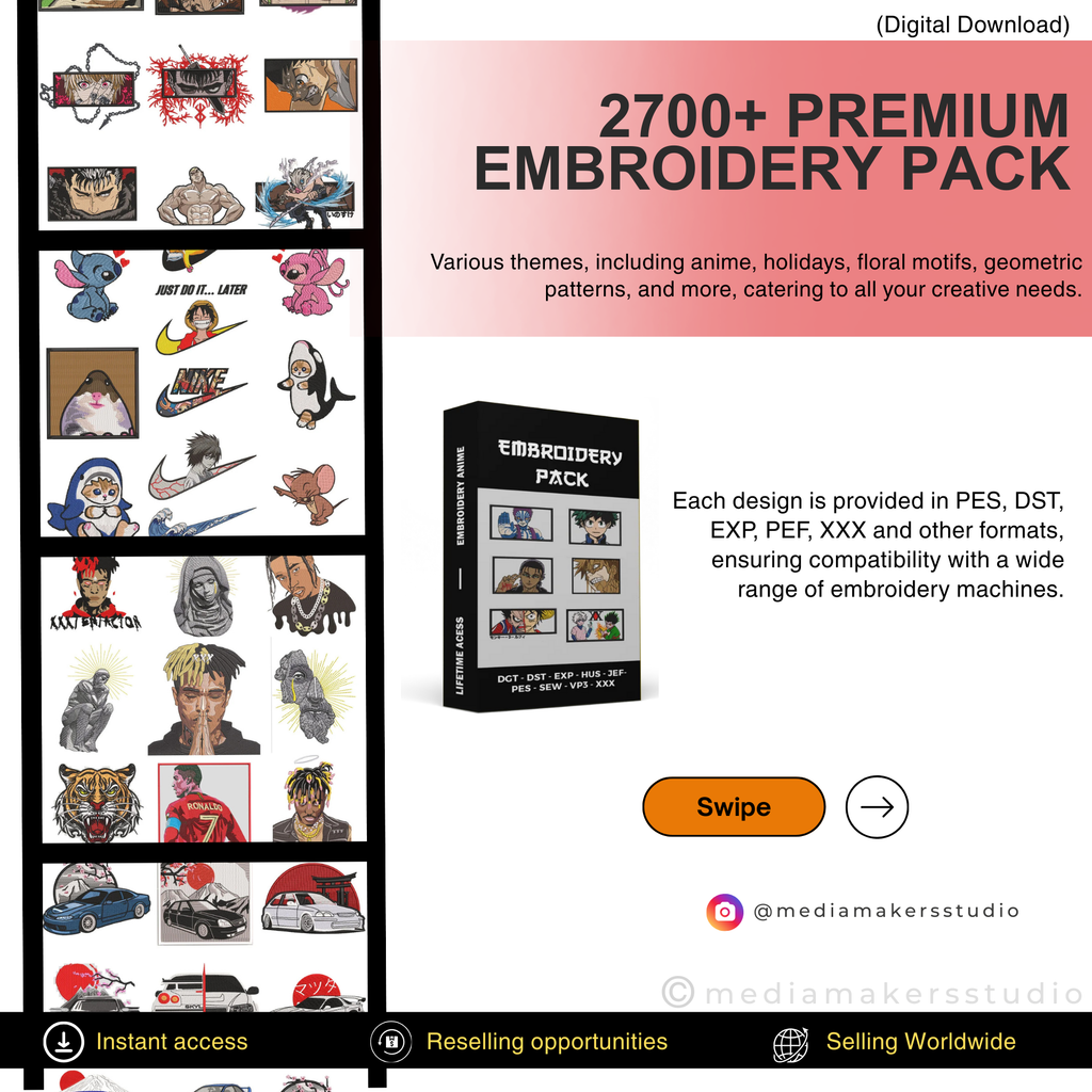 Take your embroidery projects to the next level with this 2700+ Embroidery Designs Mega Bundle, a powerful collection crafted for both beginners and professional embroiderers. This bundle includes thousands of premium designs across multiple creative themes, giving you endless inspiration for personal projects or commercial use.